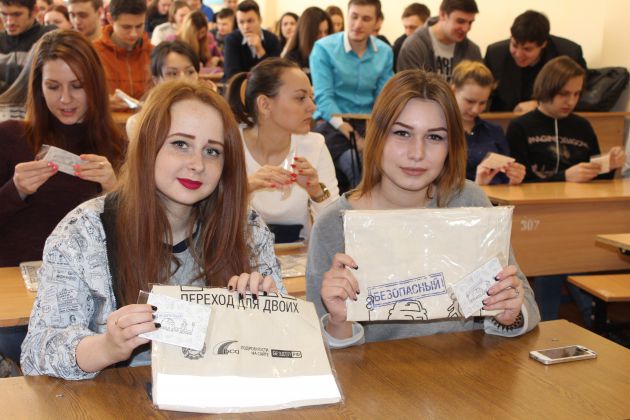 Аниматоры, представляющие кампанию, показали студентам тематический информационный фильм, провели викторину и организовали фотоакцию.