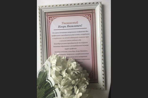 Ректор ВИВТ Игорь Яковлевич Львович принял поздравления с 25-летием вуза от представителя ассоциации выпускников Николая Иванова. Олег Аббасов и Юлия Мельничук традиционно подготовили для ребят музыкальные подарки!