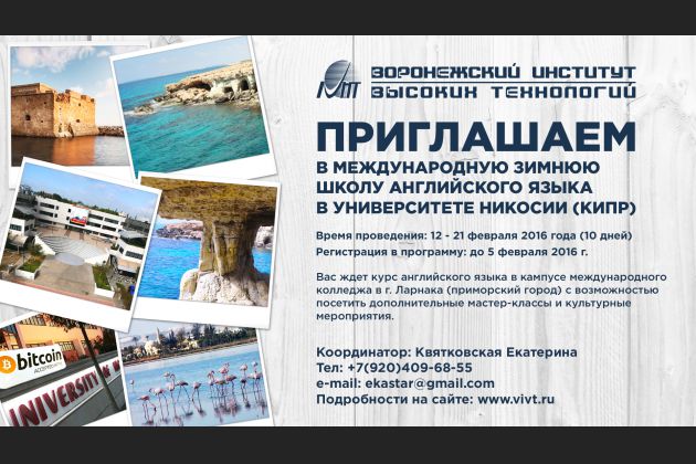 Приглашаем Вас в Международную зимнюю школу английского языка в Университете Никосии (Кипр) с 12 по 21 февраля 2016 года (10 дней).