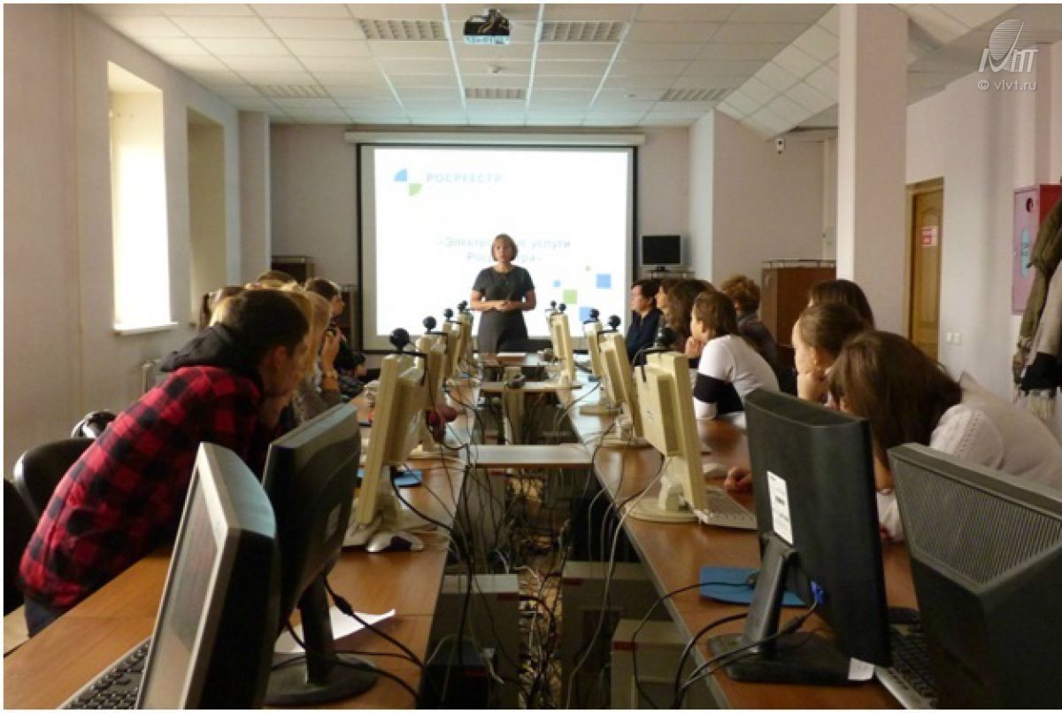 12 октября Центр Планирования и развития карьеры совместно с Департаментом по работе со студентами организовал в рамках учебной практики для студентов ВИВТ и «Колледж» ВИВТ экскурсию в Управление Росреестра по Воронежской области. Руководитель Управления Елена Перегудова рассказала о том, какие функции осуществляет Федеральная служба государственной регистрации, кадастра и картографии, будущим специалистам в сфере делопроизводства, менеджмента и IT.