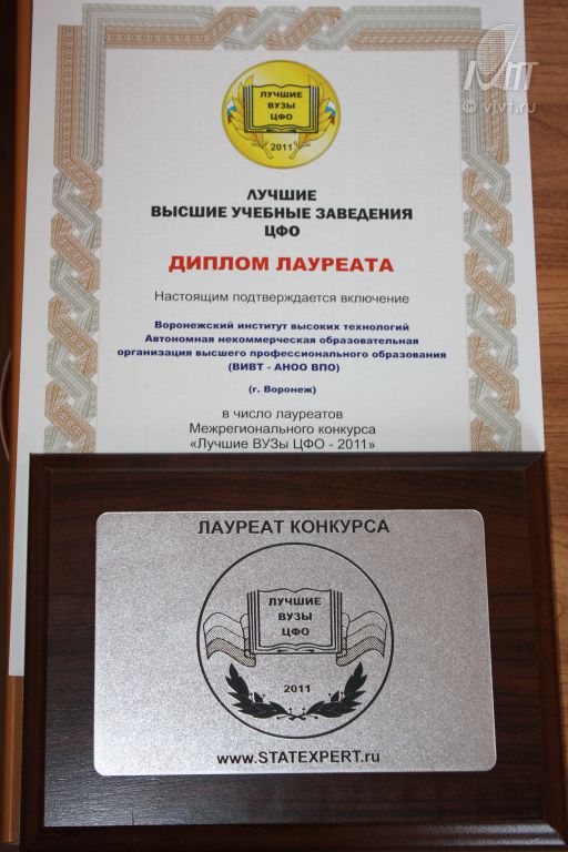 Воронежский институт высоких технологий получил статус лауреата межрегионального конкурса «Лучшие вузы ЦФО-2011», а также включен в официальный реестр «Надежная репутация». Качество образовательных услуг института получило высокие оценки по результатам опросов мнений потребителей, проведенных НИИ «Статэксперт» (г.Москва) в основных городах Центрального федерального округа.